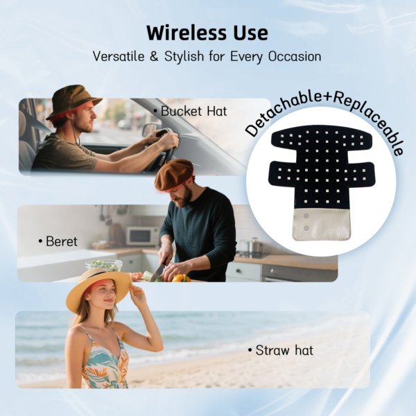 - Multi-Wavelength Combination: 660nm red, 450nm blue, and 850nm Infrared light work together for hair growth.