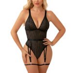 Black striped lingerie for women, deep V neck, and open back crisscross design to showcase your curves. A versatile teddy lingerie style that’s seductive and elegant for any romantic night.